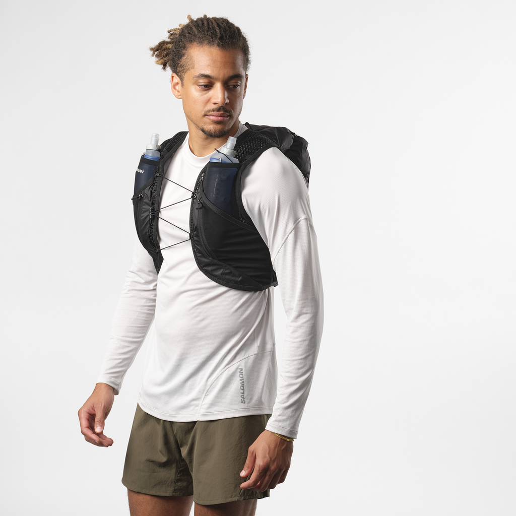 | 간편한 수분 보충 | 두 개의 가슴 포켓이 있어 이동 중에도 물병을 빠르게 꺼낼 수 있습니다. 500ml 소프트 플라스크 2개 및 1.5리터 리저버와도 호환 가능합니다. (미포함) |